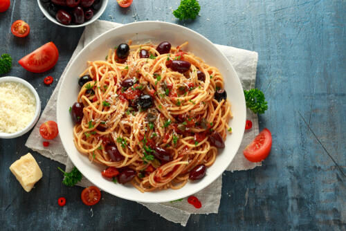 娼婦風スパゲティとも呼ばれることのある料理だ。ペペロンチーノの食材に加えてオリーブやケッパー、アンチョビなどを入れ、水で戻したドライトマトを戻し汁ごと加えてソースを作る。慣れればそこまで苦労せずに作れるうえ、さまざまな食材が組み合わさった複雑な味わいを楽しめる。応用の幅も広く、たとえば魚介類や肉を加えても美味しい。見ためもオシャレなので、作れるようにしておいて損はない。