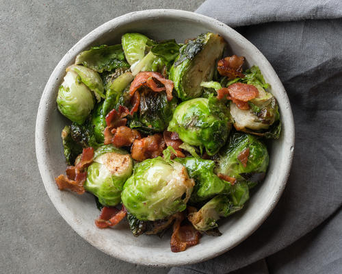 よりあっさりした味わいを楽しみたいなら、芽キャベツやほかの野菜を合わせて塩やオリーブオイルを加え、レンジで加熱するのもよい。たとえば春野菜と組み合わせれば、食べごたえがあり、かつ栄養豊富な一品に仕上がるだろう。