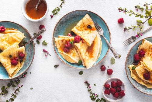 クレープの小麦粉にこだわっても面白い。本場フランス風に、そば粉を使えばコクのあるクレープになるし、そば粉が手に入りにくい場合は全粒粉を混ぜるだけで風味が変わってくる。冬ならば、甘みがのるリンゴのすりおろしでソースを作ってもよいだろう。