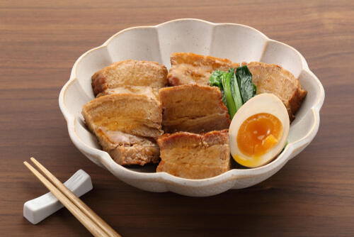 豚の角煮と煮卵は相性がよいが、圧力鍋で作る場合は注意が必要だ。茹で卵を一緒に煮込むと火が通り過ぎて固茹でになってしまう。半熟卵が好みの場合は別で作っておき、完成した豚の角煮とともに別鍋に移し余熱で味をしみ込ませるとよい。