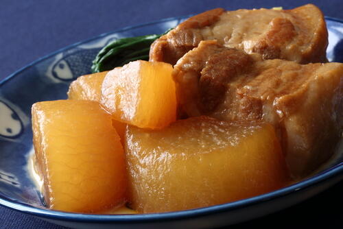 おでんの具材としても定番な大根は、味がしみ込むことでより美味しくなる。豚の角煮に加えれば、豚肉から出た旨みや甘みを含む煮汁が大根にしみて絶品となり、豚肉を少なくしてももの足りなさを感じない立派なおかずとなる。