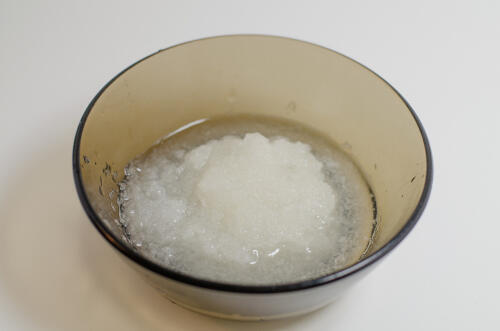 とんかつのみぞれ煮を作るのに必要な材料は大根のみで、ほかは好みで変えてよい。調味料はさっぱりと仕上げたいので、めんつゆを使う。めんつゆだけではもの足りない場合は砂糖やしょうゆを少し加えてもよい。作り方は、まず大根おろしを作る。大根おろしは、水気がある状態だと煮汁が薄まってしまうため、ザルに入れて水気をきっておこう。なめこは水洗いし、ナスは乱切りまたは輪切りに、万能ねぎは小口切りにしておく。めんつゆをフライパンに入れて温めたらナスとなめこを入れる。茄子となめこに火が通ったら大根おろしととんかつを加える。ちなみに大根おろしをここで全部入れても構わないが、半分ほど残しておくと最後にトッピングとして使うことができる。軽くとんかつを煮たら皿に移し、残しておいた大根おろし、万能ねぎをトッピングすれば完成だ。