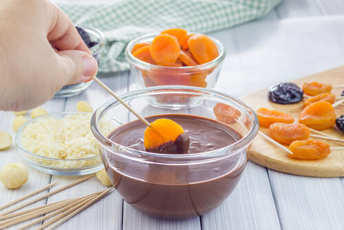 最初に紹介するドライフルーツとチョコレートを使用したスイーツは、簡単に作れるドライフルーツチョコレートだ。使用するドライフルーツはオレンジピール・レモンピール・干しいちじく・ドライアプリコットなど好みでOK。チョコレートはブラックチョコでもホワイトチョコでも構わない。