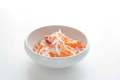 根菜同士、生酢などにも一緒に使用される食材であるが、じつはあまり食べ合わせがよくない。その理由として、大根にはビタミンCが多く含まれているが、にんじんにはそのビタミンCを壊すアスコルビナーゼが含まれるためだ。ただし、アスコルビナーゼは熱に弱い性質をもつため、加熱処理をしたにんじんはこれに当てはまらない。