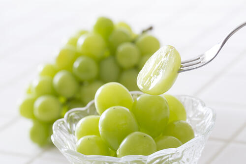 マスカットは芳醇な味と香りがあり、甘すぎずさわやかな甘酸っぱさがある。姿、香り、味、すべてにおいて気品があり、 クレオパトラの好物だったともいわれていることから「果物の女王」とも呼ばれている。それに対して黒系の巨峰などは、甘みと果汁が豊富なのが特徴である。