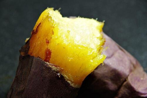 もう1つの焼き芋アイスとは、ただ焼き芋を冷凍庫で冷やしただけのものを指す。焼き芋はただ冷やすだけでアイスになるのだ。その理由は焼き芋の食感にある。サツマイモの品種改良が進み、焼き芋はホクホク系やねっとり系などさまざまな食感が楽しめるようになった。このような食感の焼き芋を冷やし固めると、アイスのようなクリーミーな食感に変化するのだ。当然ながら生クリームや牛乳を加えて作るアイスに比べるとクリーミーさは劣るが、アイスとしては申し分なく焼き芋の甘さをそのまま楽しめるのも大きな魅力だ。また、皮ごと冷凍すれば器代わりになり見ためもかわいらしい。