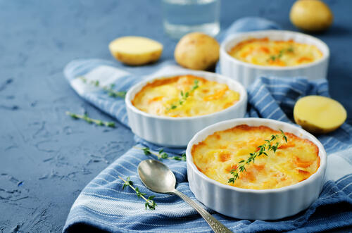 すりおろした自然薯と豆腐を合わせてグラタンにすることで、ヘルシーでふわふわ食感が楽しいアレンジグラタンが完成する。作り方は皮をむいた自然薯をすりおろしてボウルに入れ、卵と出汁、しょう油を加えてよく混ぜる。グラタン皿を用意して、長方形にカットした豆腐を並べ、上からすりおろした自然薯を流し入れる。好みでしめじなどの具材を盛り付け、チーズと塩こしょうを散らしてトースターで焼いたら完成だ。