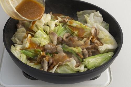回鍋肉は、強火で一気に炒めて野菜のシャキシャキ感を残すのが美味しく作るコツだ。そのため、味付けにもたついていると失敗してしまう。必ず味付け用の合わせ調味料を用意してから、フライパンに火をつけよう。