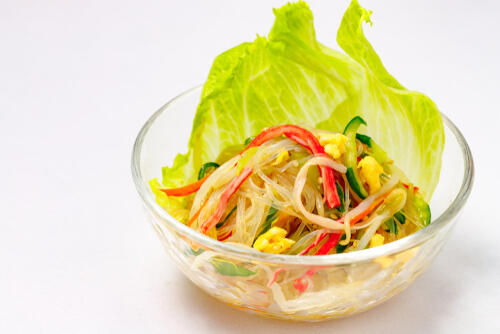 ごま油や中華スープの素と酢を加えて作ると、中華風の春雨の酢の物になる。ごま油は香りがよく、食欲をそそるので食欲の落ちる夏場にもおすすめの味付けだ。