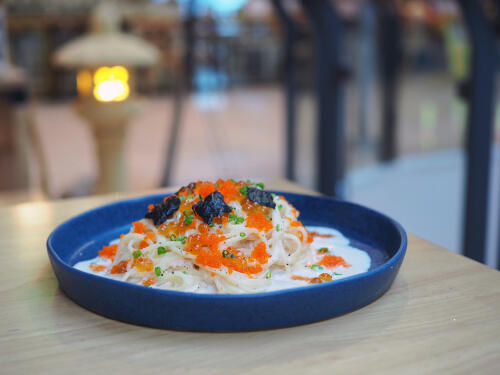 いくらはクリーム系のパスタとも相性がよい。ほうれん草などを使ったシンプルなクリームソースパスタにいくらをトッピングすれば、クリームの白といくらのオレンジが美しいパスタが作れるだろう。クリームパスタにいくらを加えることで、よりコク深い味わいに仕上がる。