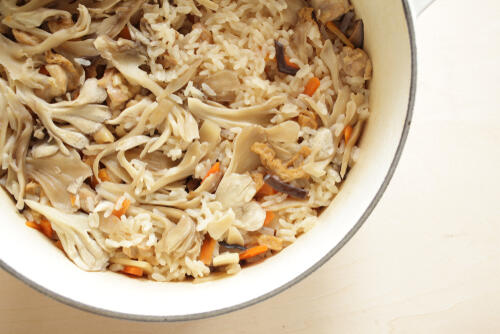 舞茸を炊き込みご飯に使えば、旨みを生かしながら栄養も摂ることができる。たっぷりと舞茸を使って米の割合を減らせば、カロリーや糖質のカットも可能である。舞茸には相性のよい具材や味付けも多くアレンジもしやすいため、さまざまなタイプの炊き込みご飯を作ってみるのも楽しそうだ。