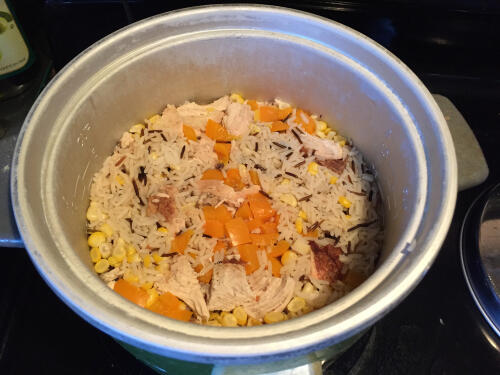 ■炊けたら全体を混ぜてから蒸らす