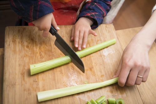 子どもと料理をすると、包丁やピーラーを使っているのを見ているほうが怖い、火は危険...と思わず、取りあげて簡単なものだけにトライさせてしまうことも多い。しかし、それでは本末転倒。子どものやりたい!の気持ちを削ぐことになってしまう。道具使いを覚えることも料理の楽しみのひとつ。できれば子ども用の安全な道具を選んで、どんどんトライさせてみよう。