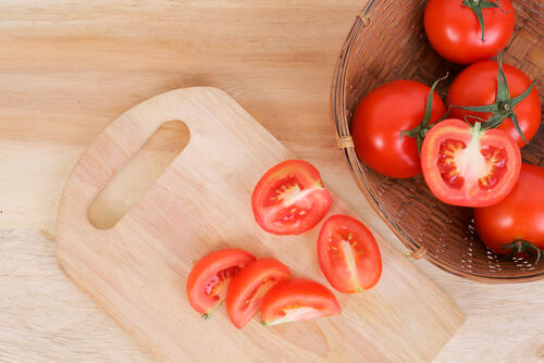 また、トマトは重量の94%が水分からできている。夏は汗をかく機会が増え、身体から水分が失われて脱水が起こりやすい。そのため、水分補給としてもトマトは役立つ。東洋医学の考え方によると、トマトは熱を冷まして潤いを与える食品とされている。暑さによりあがった体温を下げたり、口の渇きを潤したりしてくれるということだ。トマトを冷やすことでより身体の熱を下げる効果は期待できるかもしれないが、エアコンの効いた室内にいたり、冷たいものを摂りすぎたりすることで反対に胃腸に悪影響を与えるおそれもある。身体が火照っているときはよいかもしれないが、とくに必要のない場合はとり過ぎに気をつけたいところだ。