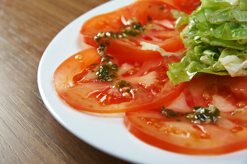 マリネはオリーブオイルと酢を使った和え物。トマトをカットして甘酢とオリーブオイルに漬けて冷やせば、ほどよい酸味の感じられるさっぱりとした冷やしトマトができる。黒こしょうや好みのハーブをかけて仕上げれば、さらに風味豊かな冷やしトマトの完成だ。