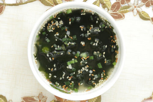 次にカシューナッツ炒めにおすすめのスープを紹介しよう。まずは、サッパリとしたわかめスープだ。カシューナッツのカロリーは100gあたりで576kcalと高カロリーである。食感が好きだからとたっぷり入れると当然カシューナッツ炒めそのもののカロリーが高くなる。低カロリーで栄養成分や機能性成分が豊富なわかめを使ったスープを組み合わせるのがおすすめだ。