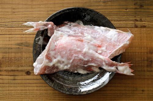 チヒロアカウオは全長40cm程度で、モトアカウオよりもやや小ぶりの海水魚。アラスカメヌケと同じように大西洋に生息しているが、水深400~600mに多く生息しているという。利用方法はモトアカウオと同じで、冷凍輸入されることもあれば、「鯛粕」の原材料として使われることもある。