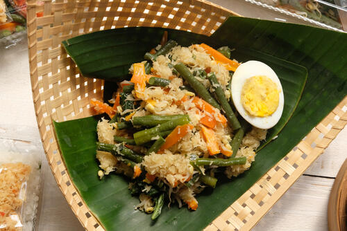 さまざまな具材をたくさん使った具だくさんの炒め煮だ。彩りもいいので弁当のおかずや作り置きおかずとしてもピッタリだ。作り方は、フライパンにごま油をひいて鶏の挽肉をほぐしながら炒め、そこに電子レンジを使って水きりした豆腐とれんこんやしいたけの薄切り、油揚げを加えて炒めていく。豆腐はつぶしながら炒めよう。味付けは粉末の和風出汁と砂糖、みりん、酒、醤油を加えて煮込んでいく。最後に茹でて皮をむいた枝豆を加えてサッと煮たら完成だ。
