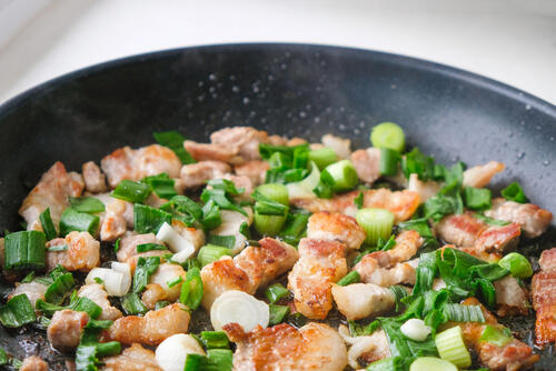 トントロにニラを合わせて炒めることで、夕飯や弁当のおかずにピッタリな一品が完成する。作り方は、フライパンにごま油を入れてトントロを炒める。火が通ったら、料理酒とみりん、塩、黒胡椒と食べやすく切ったニラを加えて味がなじむまで炒めたら完成だ。黒胡椒がピリッとアクセントになり、ごはんが進む味わいだ。