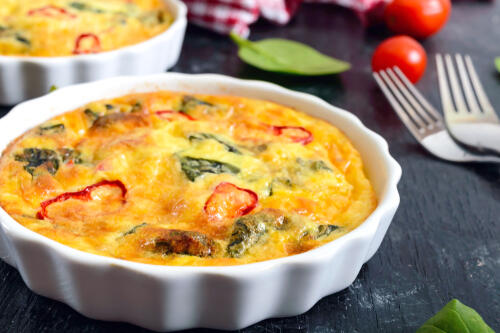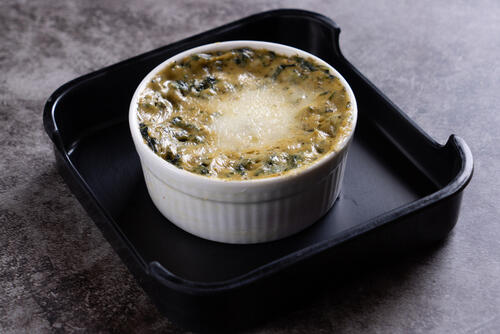 ほうれん草を使った作り置き可能なメニューにキッシュがある。大きめのキッシュもよいが、ココットを使用すると食卓に並べやすく忙しい朝にピッタリだ。ほうれん草を茹で約5cmに切り、玉ねぎは薄切りに、ハムは千切りにする。じゃがいもはいちょう切りにし水にさらしたあと、レンジで加熱してやわらかくするとよい。フライパンにバターを入れて加熱し、切った野菜を入れて炒め、塩コショウで味を付ける。終わったら、ボウルで溶き卵を作り、牛乳や炒めた野菜、ハム、チーズの半量を入れ混ぜる。ここでもう一度、塩コショウを少しふるとよいだろう。最後にココットへ生地を入れ、上に残ったチーズをのせて180℃のオーブンで20分焼けば完成だ。