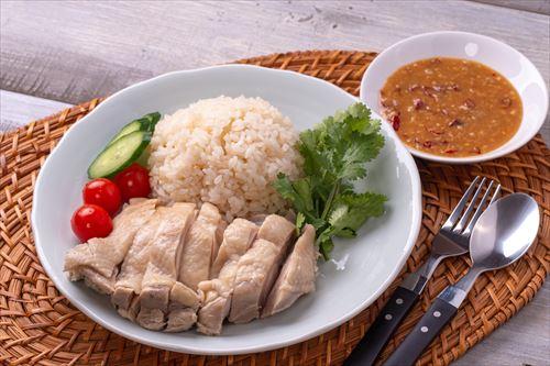 カオマンガイとは、海南鶏飯とも呼ばれる料理でシンガポールチキンライスという別名にもある通り、シンガポールやタイ、マレーシアなどで、食べられている料理だ。鶏肉と米を一緒に炊きあげる、または鶏は別で茹で、そのスープで米を炊きあげるといい。チリソースやオイスターソースなどをつけながら食べるのが一般的だ。ナンプラーが使われるのは、ごはんにつける下味のような役割。代用としておすすめなのは、前述の別の魚醤。どうしても臭みが苦手という場合は、醤油、少量のオイスターソースもいいだろう。