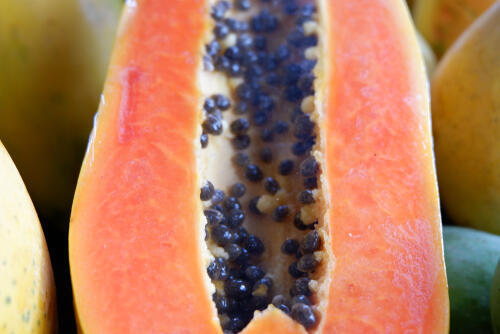 パパイヤの中でもサンライズと呼ばれる品種は糖度が高く、酸味の少ないさわやかな甘みを楽しむことができる。マンゴーのように口の中でとろける食感や、臭みがまったくない芳醇な香りをともなう甘さが高い人気を呼んでいる。表面の皮の色はオレンジに近い色をしているが、果肉の色は赤に近く、イチゴを連想させることから別名「ストロベリーパパイヤ」とも呼ばれている。また、パパイヤにはアミノ酸、食物繊維、ビタミンといった人間の身体に欠かせない成分が豊富に含まれている。そのため「メディカルフルーツ」という異名も持っているのだ。