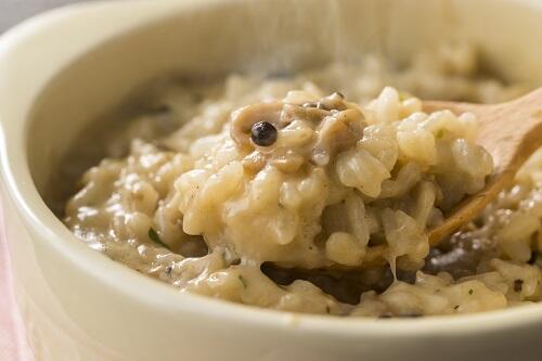 マグカップを使えば、オシャレなリゾットも簡単に作ることができる。作り方は、マグカップにごはんと牛乳、食べやすくカットしたハム、コンソメ顆粒、ブラックペッパーを入れて、よく混ぜる。上にスライスチーズとバターをのせてレンジで加熱し、さらに混ぜ合わせたら完成だ。ごはんの量に合わせて牛乳を加えることで、ほどよい柔らかさのリゾットが完成する。具材を変えることで、さまざまなアレンジも楽しむことができるだろう。