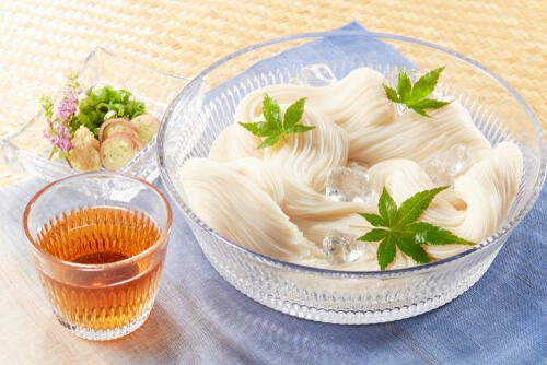 そうめんと相性がいい薬味の組み合わせのひとつが、発汗作用と食欲増進効果が期待できるみょうがと消化を助けるねぎだ。見た目も涼しげで食欲が落ちやすい夏に食べるのにピッタリである。