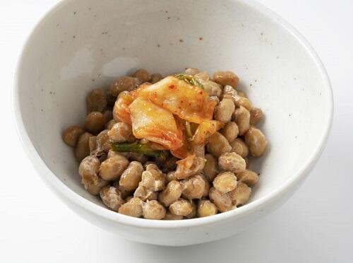 2.納豆とキムチを、混ぜ合わせておく。
