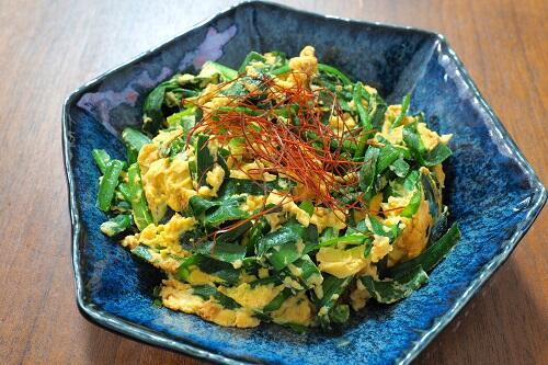 2. 厚揚げでボリューム満点!ニラの卵炒め