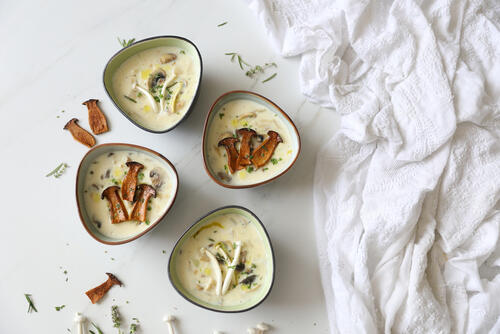中華系の透明なスープと相性のいいイメージのあるエリンギだが、実はミルクを使ったクリーミーなスープとも絶妙にマッチする食材なのだ。エリンギの旨みがミルクベースのスープに溶け出した、やさしい味わいのスープを紹介する。