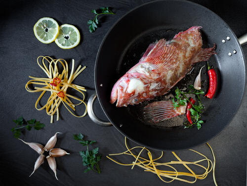 赤魚の煮付けの定番の作り方が、フライパンを使った調理法だ。フライパンに赤魚と調味料を入れて、甘辛く煮付けることで美味しい煮付けが完成するのだ。作り方は、長ねぎを4等分に切っておき赤魚には味がしみ込みやすいように、切り込みを入れておく。フライパンに長ねぎと水と醤油、酒、砂糖、みりんを黄金比で入れ、火にかける。煮立ったら赤魚を加え落としぶたをして煮付けていく。煮立ってきたら、弱火にしてさらに煮詰めて行けば完成だ。この際、焦げ付かないように注意しよう。