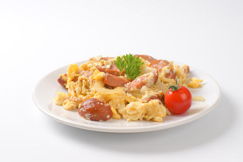 ウィンナーと卵は相性のよい食材で、朝食のおかずとしても合わせて使われることが多い。どちらもタンパク質源となる食材で、難しい調理がいらないので使いやすいというのもメリットである。