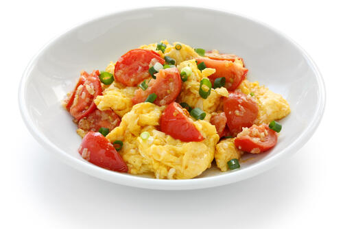 卵とほうれん草、卵とトマトなどを組み合わせて炒めるだけで立派なメインディッシュになる。味付けは塩コショウでも美味しいが、ごま油で炒めたり中華スープの素を使えばごはんに合う味わいになるだろう。まずは油をひいて熱したフライパンに溶いた卵を流し入れ、半熟程度になったら一度取り出す。同じフライパンで野菜を炒めて軽く味を付け、先ほど取り出した卵を戻してサッと合わせれば完成。卵を一度取り出すことで、加熱しすぎを防いでふわふわに仕上げられる。