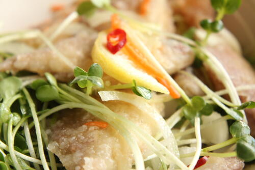 鶏肉の部位によって南蛮漬けの仕上がりが異なる。たとえばささみや皮なしむね肉を使えば、南蛮漬けも比較的あっさりする。一方皮付きの部位などを使えば、ボリュームたっぷりの一品に仕上がる。使い方に合わせて献立のバランスも考えたい。また、鶏肉を使うと、魚に比べて淡白な味わいになる。これらをふまえ、献立に加えたい料理をいくつか見ていこう。