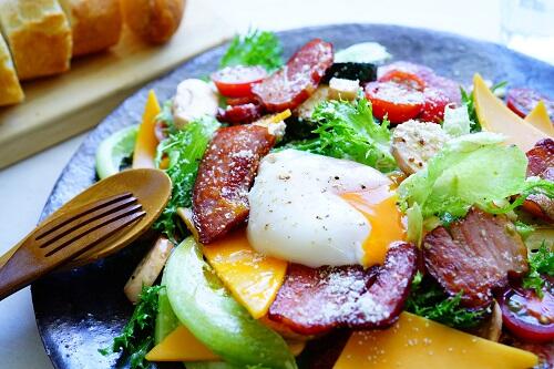 飲食店などで注文するシーザーサラダの上には、必ずといっていいほど温泉卵がトッピングされている。この温泉卵をサラダに和えることで、より濃厚でコクのある美味しいシーザーサラダが完成するのだ。