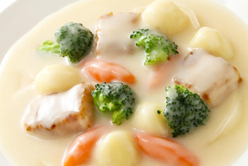 たとえば、ホワイトソースなどのとろみが必要となる料理は、米粉や片栗粉などのでんぷん質によってとろみの再現が可能だ。ほかにもタピオカ粉やコーンスターチでも代替できる。同様に、ジャガイモやカボチャをどろどろになるまで煮ればポタージュやシチューのとろみを再現できる。どろどろになるまで煮る代わりにすり下ろして使っても同様の結果を得ることができるので覚えておこう。