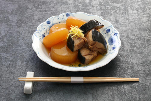 ひとつめは和食料理の定番であるブリ大根だ。ことこと煮込むイメージがあるかもしれないが、大根を電子レンジで加熱しておくと時短で作れる。味は美味しくても見た目が地味になりがちなブリ大根。千切りにした柚子の皮をトッピングすれば、アクセントになり見栄えがグッとよくなる。