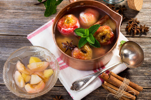 りんごのコンポート柚子風味は、柚子の皮と絞り汁をシナモン、黒こしょう、ハチミツ、りんごと煮込んだデザートだ。ビタミンCを豊富に含む柚子を使用した一品で、シナモンと黒こしょうをかければ身体を温めてくれるだろう。食事のシメは手作りデザートをどうぞ。
