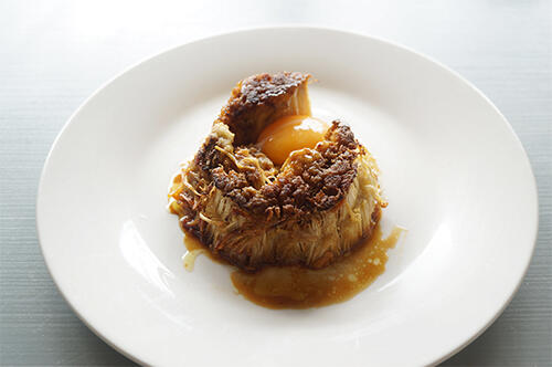 えのきステーキは色が地味であるため、そのまま盛り付けてしまうと美味しそうに見えないことがある。彩りよく仕上げるにはレタスやトマトなどを添えるという方法もあるが、えのきステーキの場合は卵黄を使うのがおすすめだ。卵黄をえのきステーキの上にのせれば鮮やかな黄色が目を引くとともに、食べるときに卵黄を絡めればコクが加わるためより美味しく食べることができる。