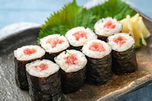 トロは、マグロの部位の中では、最も美味だが、脂がのっているためマグロの赤身が使用されている鉄火巻に比べ高カロリーになる。