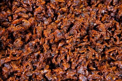 食べやすい大きさに切った牛肉と先述の調味料、生姜、水を鍋に入れて煮込む。しっかり煮詰め、煮汁がほぼなくなれば完成だ。