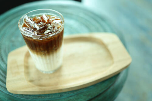 次にカフェで人気を集める二層アイスカフェオレの作り方を紹介しよう。用意する材料は、インスタントコーヒー・水・氷・牛乳・ガムシロップでOK。コーヒーカップに濃いめのコーヒーを淹れ、氷を加えコーヒーを急冷させる。別の容器に牛乳とガムシロップを入れ、よくかき混ぜておく。あとは牛乳入りのグラスに氷を入れ、冷やしたコーヒーをゆっくり注げば二層アイスカフェオレの完成だ。