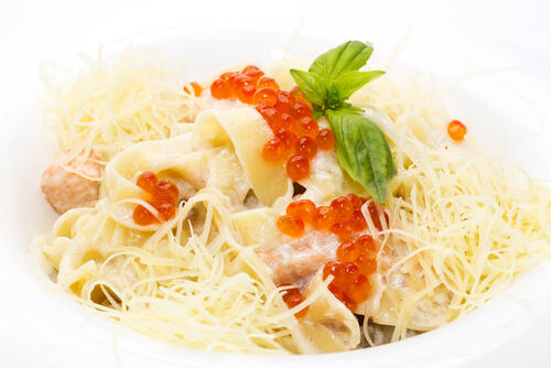 パスタにクリームチーズをからめて、いくらをトッピングする料理もある。まったりとチーズがからんだパスタと、プチっとした食感のいくらはよく合う。クリームチーズがくどく感じる場合には、黒胡椒を挽いて味をしめるとよいだろう。