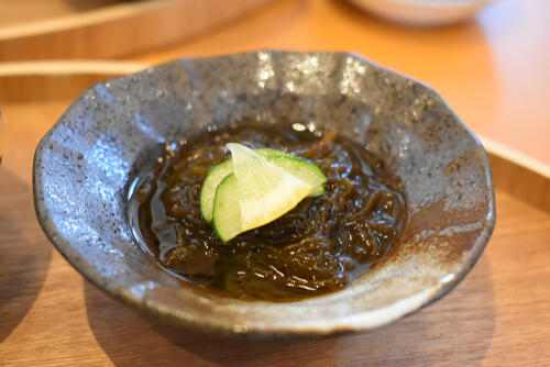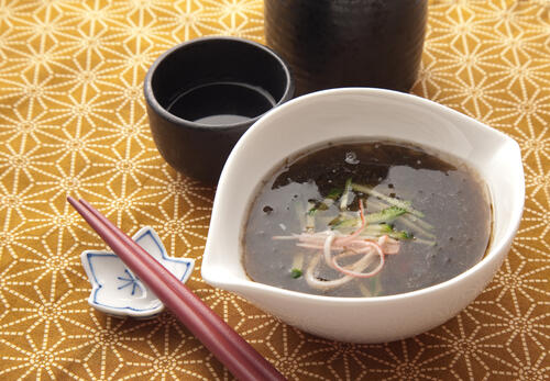 先述したように塩抜きしたもずくは1ヶ月ほど保存可能だ。塩抜きしたもずくはどのような料理にすると美味しく味わえるのだろうか。今回は三杯酢で味わうもずくの作り方を紹介しよう。まず塩抜きしたもずくに熱湯をかけ冷たい水にさらす。次にしっかり水気を切り器に盛り付ける。