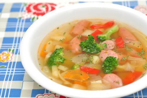 洋風のスープといえばコンソメスープをまず思い浮かべるだろう。コンソメスープの最大の魅力は入れる具材を選ばないことだ。味付けがコンソメと塩、こしょうのみとシンプルであるがゆえに、具材それぞれがもつ旨みや風味をしっかりと吸収できるのだ。そのため、冷蔵庫に残っている野菜やキノコだけでも十分美味しいコンソメスープが作れる。コンソメスープにコクを出したいときはベーコンを入れるのがおすすめだ。