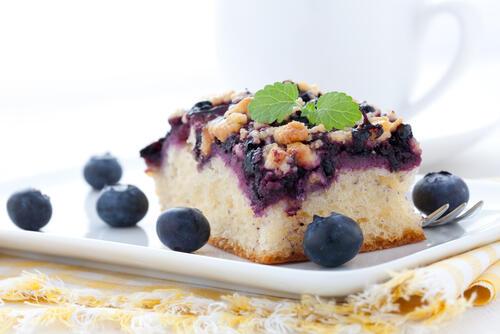 冷凍のブルーベリーとたっぷりのヨーグルトを使った、色鮮やかなケーキだ。ヨーグルトと少量の粉チーズを使うのでさわやかな仕上がりになる。ただ甘いだけのケーキは苦手という人にはおすすめである。