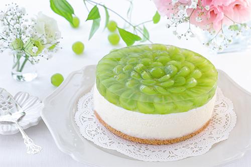 レアチーズケーキの生地の部分は、クリームチーズが主役となる。クリームチーズと砂糖、レモン汁を加えて混ぜ、ゼラチン、牛乳、生クリームを加えて生地を作る。クッキー地を敷き詰めた型に生地を流し込み、冷蔵庫で冷やせば固まる。型から出したあとに、さらにシャインマスカットや生クリーム、上級者ならばゼリーも利用してデコレーションすれば豪華である。
