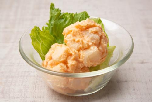 じゃがいも以外にも、大根やにんじん、山芋などの千切りと和えたり、マカロニたらこサラダにしたりとさまざまなアレンジができる。