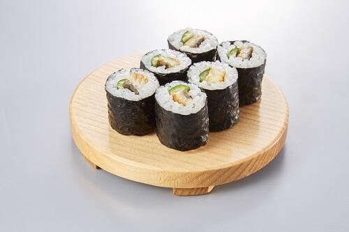 たとえば、イベリコ豚ユッケ軍艦は、甘辛味に仕上げたコクのあるイベリコ豚に半熟卵がトッピングされたもの。寿司の概念を飛び越えた満足感ある逸品だ。171kcalのうなきゅう巻は、人気の高いうなぎときゅうりの組み合わせ。176kcalの海鮮細巻きは、店で切り出した魚を組み合わせて作った細巻きで、その日によって具材が変化する隠れた逸品。細巻きは、にぎりや軍艦よりごはんの量が増えることもあり、ややカロリーが高めの設定になる。